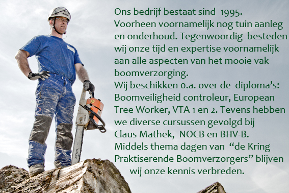 Die durch Eric Mercx Boomverzorging erstellten Texte und Fotos sind urheberrechtlich geschützt. Inhalte und Werke auf diesen Seiten unterliegen dem niederländischen Urheberrecht. Die Vervielfältigung, Bearbeitung, Verbreitung und jede Art der Verwertung außerhalb der Grenzen des Urheberrechtes erfordern eine schriftliche Zustimmung des Seitenbetreibers. Downloads und Kopien dieser Seite sind ausschließlich für den privaten und nicht für den kommerziellen Gebrauch gestattet.